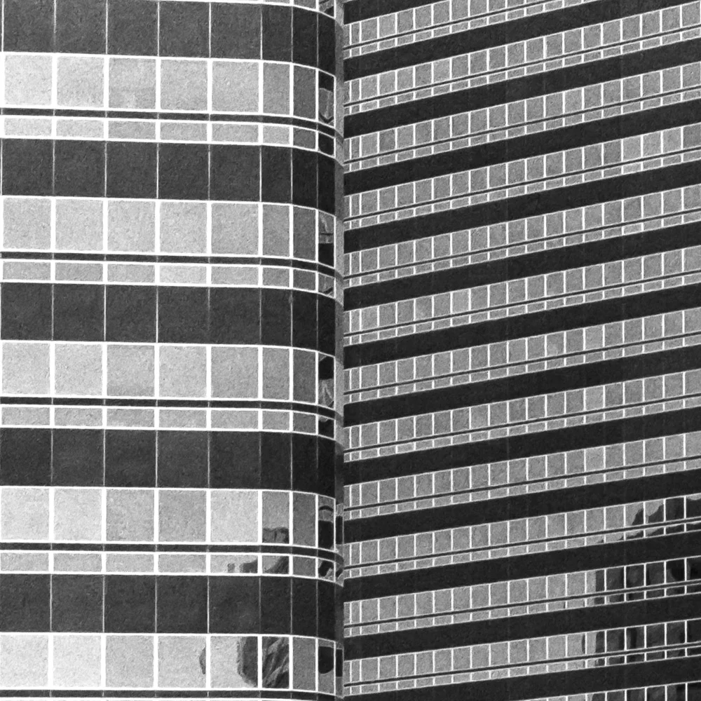So during the winter of 2018/2019 I explored Houston’s architecture with an aim of avoiding pure documentation of any single structure. The images juxtapose two or more buildings while at the same time avoiding street-level noise of people, cars and lamp posts. I also tend to avoid the tops of buildings. This simplifies city-scapes into their simplest shaped and lines. Perspective becomes illusive as it is sometimes difficult to tell which building faces which direction. Sometimes the buildings are lined up in such a way that they almost look like a new single structure.